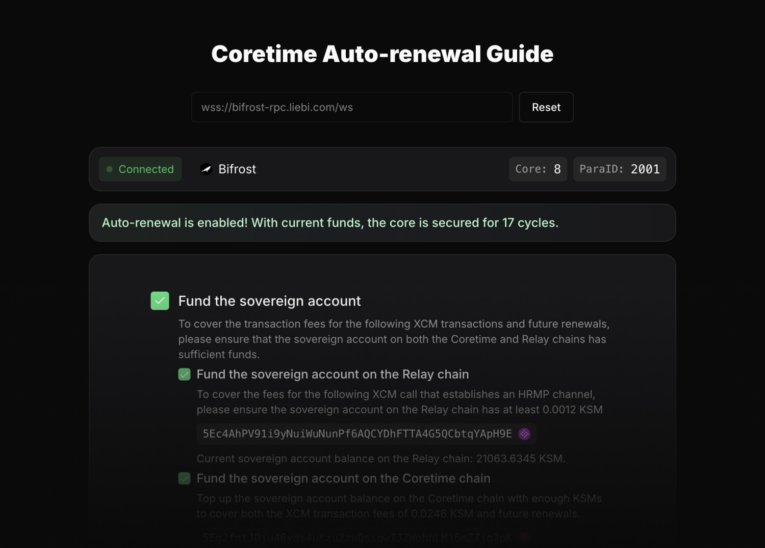 In addition to other exciting features available exclusively to our PDP beta testers (apply to join the next testing cohort!), we’re expanding our public tools, starting with the “Coretime Auto-renewal Guide” page.